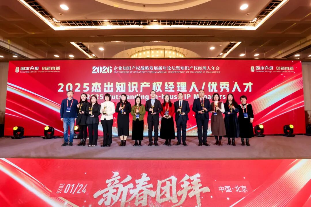 On January 24, the 2026 Enterprise IP Strategy Forum and Annual Conference of In-house IP Managers kicked off at the Beijing International Hotel. At the grand party in that evening, the Launching Ceremony of the Selection and Training Program for Outstanding IP Practitioners and the Appointment Ceremony of Think Tank Experts (Training Mentors) were held and the winners of the 2025 Outstanding In-house IP Managers, 2025 Outstanding IP Service Teams, 2025 Outstanding International IP Service Teams, and 2025 Outstanding IP Management Teams under the IP Eagles Selection and Training Program were unveiled.
