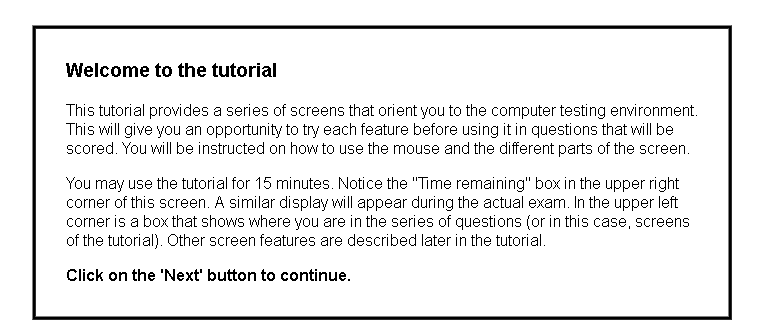 为便于考生熟悉考试系统,Prometric考试中心还提供了15分钟的电子考试操作指引,帮助考生了解如何使用考试系统(如图3、图4)。