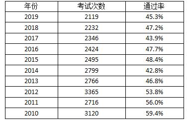 表1 美国注册专利代理人历年考试结果
